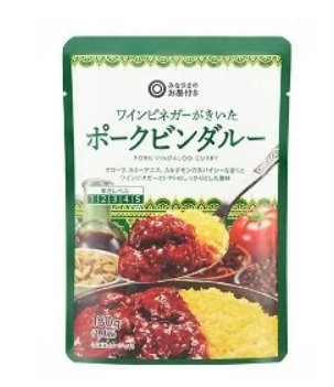 「ワインビネガーがきいたポークビンダルー」は、クローブ、スターアニス、カルダモンのスパイシーな香りとワインビネガーとトマトのしっかりとした酸味のカレー。180gで259円(本体価格、以下同)。
