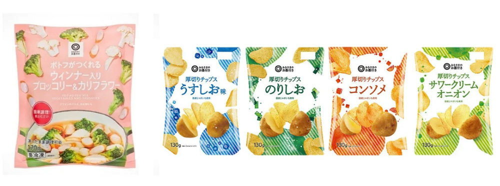 そのほか、「ポトフがつくれる ウィンナー入りブロッコリー&カリフラワー」170g 299円や、定番の厚切りチップスシリーズの「ポテトチップス」なども登場する。