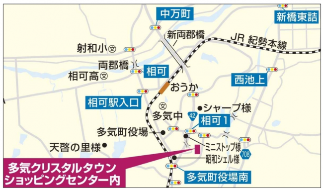 多気クリスタルタウンは、三重県多気郡多気町が進める都市計画およびその商工業複合型施設の名称。伊勢自動車道勢和多気インターチェンジから約5㎞、JR紀勢本線相可駅から約1.5㎞という立地だ。