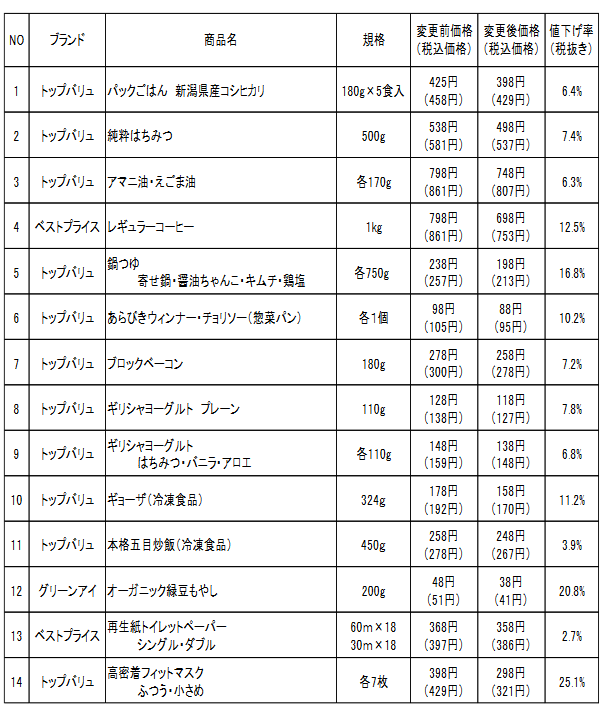 イオンnews|8/25から再び「トップバリュ」144品目「感謝の値下げ」