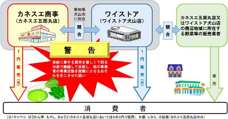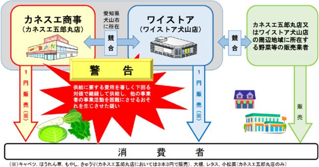 公取委news|「1円戦争」の犬山市カネスエとワイストアに「不当廉売」警告