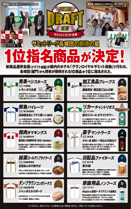 サミット(株)(東京都杉並区、竹野浩樹社長)は、「サミットドラフト会議セール」を実施する。これは「サミットリーグ」ドラフト会議と称して、部門ごとに将来有望な商品を1位指名したうえでセール展開するという企画。直近で新発売、または新規導入した商品の中から10商品を、10月25日から27日までの3日間、全店で特売する。