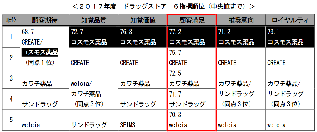 検索ワード:コスモス薬品 ドラッグストア 顧客満足度指数 JCSI
