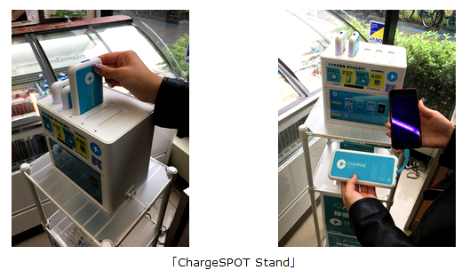 この専用マシンは、(株)INFORICH(東京都渋谷区、秋山広宣CEO)が開発したもので、ほぼすべてのスマートフォンに対応できる。「ChargeSPOT Stand」には、バッテリー5個分のスロットを搭載した小型のタイプや、バッテリー20個分のスロットを搭載した大型のタイプなど、5つの種類を設置している。