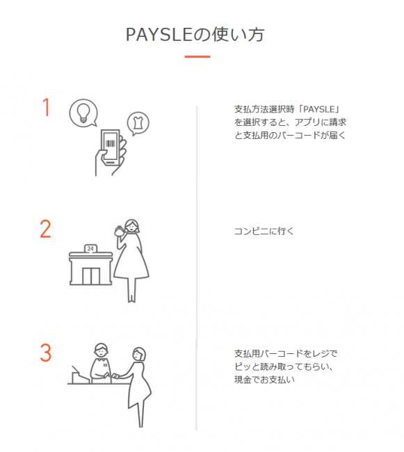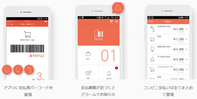「PAYSLE」は、公共料金や通信販売の代金等の現金支払いの際に用いている紙の払込票に記載されたバーコードを、あらかじめスマートフォンにダウンロードしたアプリケーションの画面上に表示させることにより、コンビニの店頭で決済を実現するものだ。