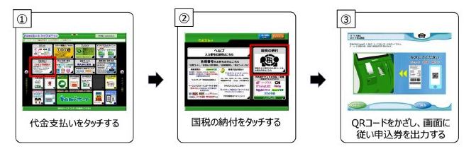今まで国税納付は、税務署に申告したあとに届いた紙納付書で行われていた。この国税納付サービスでは、納税情報をWEBに申請すると、コンビニ納付用QRコードが即時発行される。そのQPコードを「Famiポート」にかざして発券された申込券でレジでの支払いができる。