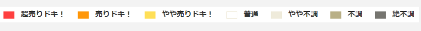 商品は[惣菜][青果][精肉][鮮魚][日配][グローサリー][日用品]の分野に含まれる最大550カテゴリーに及ぶ。指数は、超売りドキ!から絶不調までの7ランクで表わす。