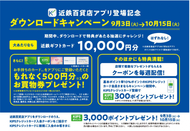 アプリのダウンロードを促進するために、9月3日(火)~10月15日(火)までキャンペーンを展開する。