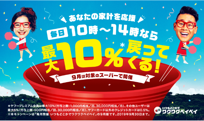 6月にドラッグストアチェーンを対象にしたキャンペーンを展開。7月は「いつもどこかでワクワクペイペイ」を開催して、飲食店とスーパーマーケットを対象に、毎日のランチで最大20%のボーナス還元を実施。そして9月はスーパーマーケットを対象にした10%還元のキャンペーンを展開する。