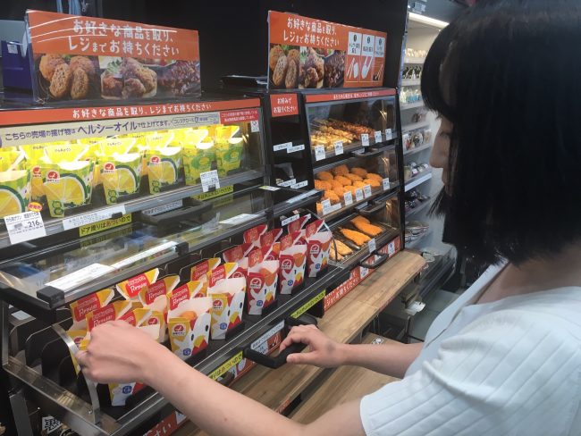 混雑時のレジ待ち時間にはフライドフーズを頼みづらいというお客の声から昨年から実験導入を行っていた。セルフ販売什器導入によって、お客は好きな商品をいつでも自由に選ぶことができ、従業員は注文を受ける手間が省ける。実際、実験導入店舗では売上げが伸びたうえ、1日当たり1時間の作業時間軽減にもつながったため、本格導入を進めていく。