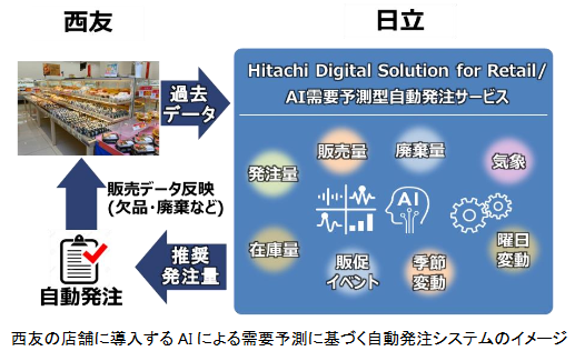 合同会社西友(東京都北区、リオネル・デスクリーCEO)はAIによる需要予測に基づき自動発注を行うシステムとして、日立の「Hitachi Digital Solution for Retail/AI需要予測型自動発注サービス」を、10月から全店に導入する。対象品目は、販売する弁当・惣菜売場の商品のうち、自社工場で製造した商品をはじめとする約250アイテム。
