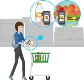 実験ではレジアプリを搭載した専用スマートフォンをお客に貸与し、お客自身が商品バーコードをスキャンする。リテールパートナーズ傘下の(株)丸久が発行する電子マネー付きポイントカード「maruca」会員を対象に行う。また、より実際の運用に近い実証実験を行うため、年齢確認が必要な商品や値引商品も対象とする。