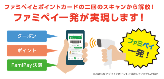 また11月26日には、「ファミペイ」内で、「dポイント」「楽天ポイント」「Tポイント」との連携を開始した。これによって、顧客が行っていたポイントカードの提示、クーポンの提示、代金の支払いという3回の手間を、「ファミペイ」上で1回で完結できるようになった。ファミペイで完結した場合は、レジ接客時間が3分の1になることから、お客のレジでの待ち時間の短縮と、店舗のレジ接客における省力化にもつながる。