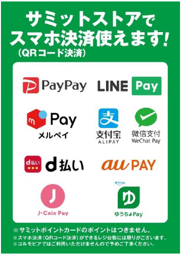 サミットnews|スマホ決済サービス1/15から9種類に拡大