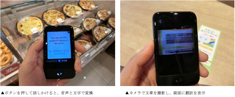 「POCKETALK(ポケトーク)」にはインターネット上の最新、最適なエンジンと AI(人工知能)が用いられている。利用は簡単で、相手の国の言語を選び、ボタンを押しながら日本語で話しかけるだけよい。瞬時に音声と文字の両方でその国の言語に変換される。ただし、各国の時勢の影響や通信環境の状況によって、翻訳に時間がかかったり、利用できない場合もある。