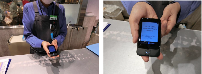 機種は「POCKETALK(ポケトーク)S」で、すでに「POCKETALK(ポケトーク)W」を導入していた12店舗にも改めてSシリーズ(2019年12月発売の新型)を導入する。各店舗のサービスカウンターに設置する。
