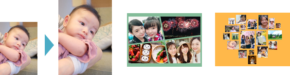 写真プリントはこれまでのLサイズに加え、2Lサイズでのプリントが可能になった。また、コンビニエンスストアのマルチコピー機として初めて「シャッフルプリント」の提供を開始する。今までの思い出写真を再活用し、自分好みにアレンジしてお気に入りの一枚をプリントすることができる。