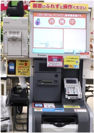 精算機には今回新たに非接触パネルを導入したことで、専用端末機以外に触れることなく買物することができるようになった。支払方法は、通常の買物と同様クレジット、電子マネー、現金、金券、ギフトカードなどが利用できる。