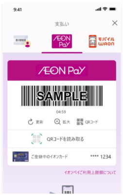 「AEON Pay」は、2021年9月1日から開始しているイオンのトータルアプリ「iAEON」(アイイオン)をダウンロードし、イオンマークのついたクレジットカードやデビットカードを登録して利用する。全国のグループ店舗(一部店舗を除く)のレジで、表示されたバーコードを提示すると、簡単にレジ決済することができる。決済時のポイントは、200円(税込み)=2WAONPOINTとなる。通常は200円=1WAONPOINTだが、ミニストップ含め、イオングループの対象店舗での支払い時にはいつでも2倍が適用される。