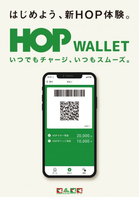 同社は「HOP WALLET」のリリースキャンペーンとして、2月19日~3月31日の期間中、HOPマネーを1万円チャージするごとに200HOPポイントを進呈する。