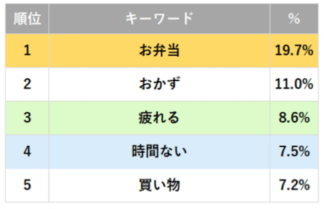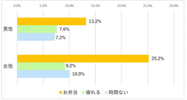 <頻出ワード「お弁当」「疲れる」「時間ない」の男女比>