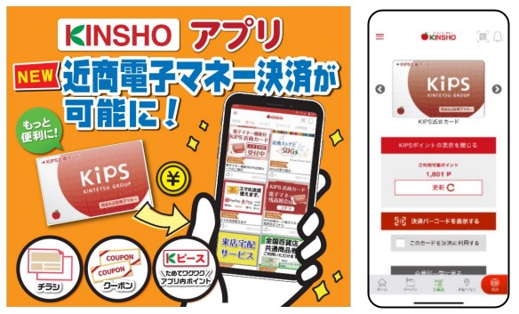 (株)近商ストア(大阪府松原市、上田尚義社長)は7月20日(水)、「近商ストア アプリ」に電子マネー機能付きポイントカード「KIPS 近商カード」を連携させるバージョンアップを行う。