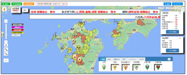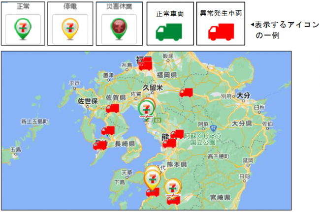 全国のセブン‐イレブンが対象。停電・回線障害・災害休業など災害時の店舗状況や配送トラックの状況を見える化できる。