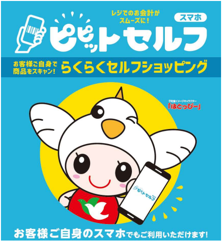 売場では、スマートフォンで商品のバーコードを読み取る。スマートフォンでの読み取り操作は、子どもにも人気があり、買上げ金額を確認しながら買物ができる。また、会計はピピットセルフ専用精算機を用意しているので、レジ待ち時間の短縮に繋がる。