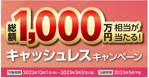 12月1日(木)から、クレジット払い、プリペイドカード払いを対象としたキャッシュレスキャンペーンを2023年3月31日(金)まで実施する。