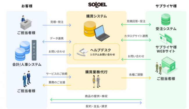 また、間接材購買業務の全プロセスを可視化することでコンプライアンスやガバナンスの強化につなげる。こうした間接材購買プラットフォーム「SOLOEL」の機能は、昨今のコロナ禍で拡大した在宅勤務のニーズに応じるものとして、利用企業から好評を得ている。