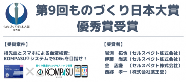受賞案件は「指先血とスマホによる血液検査:KOMPASU®システムでSDGsを目指せ!」。
