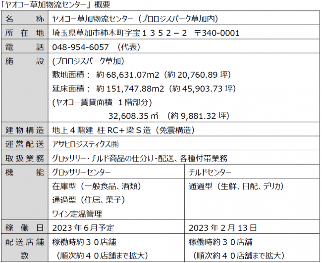(株)ヤオコー(埼玉県川越市、川野澄人社長)は2月13日(月)、埼玉県草加市に「ヤオコー草加物流センター」を開設する。