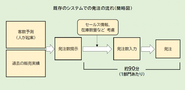 既存システムと比べ、部門当たり1日平均90分の発注時間が5割削減、平均80分を要する前日発注調整時間は4割削減となる。発注精度はPI値予測で最大40%の改善となる。