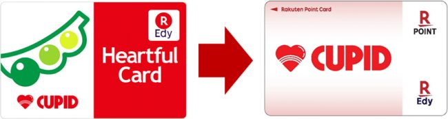キューピットではサービス開始に合わせ、これまで楽天Edy(株)と提携し発行していたIC型電子マネー「Edyは~とふるカード」を、「楽天Edy」機能と共通ポイントサービス「楽天ポイントカード」を搭載したオリジナルデザイン「キューピットEdy-楽天ポイントカード」へ切り替える。