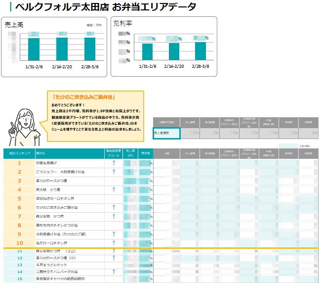 本部の販売施策と店舗側の販売状況を客観的な数値のもと、リアルタイムに適切な判断をサポートする。ベルクでは、弁当売場のほかプレミアムゾーンと呼ぶ入口付近の企画コーナーや特別販売コーナー、精肉売場などで検証を進めている。今後も継続的に、各店舗や売場への展開をする。