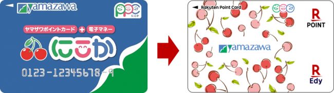 また、「楽天Edy」での決済が可能になり、利用金額に応じて「楽天ポイント」が進呈される。「ヤマザワ」は2023年12月に自社ポイントカード「にこかカード」のサービスを終了し、「ヤマザワ Edy-楽天ポイントカード」へ切り替える。