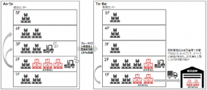 需要予測の精度向上により、臨時便の横持ち回数が減少した。それに伴う入出荷作業の工数が1日当たり約30%削減された。