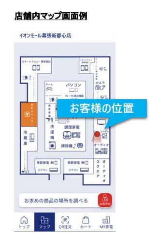 ①顧客の位置情報がわかる店内マップ(目的商品エリアまで辿り着きやすい)