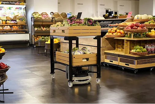 Armoは小型の自走式ロボットでセンサー装備により、周囲の人や障害物を回避しつつ、店内を自在に走行する。カートやモニターなどのユニットを組み合わせることで、店舗内業務である品出し、顧客への売場案内などを効率的に行うことができる。