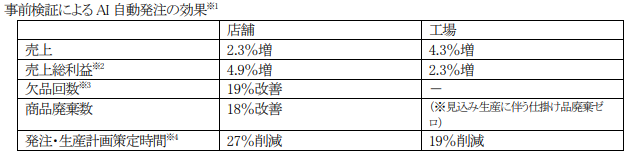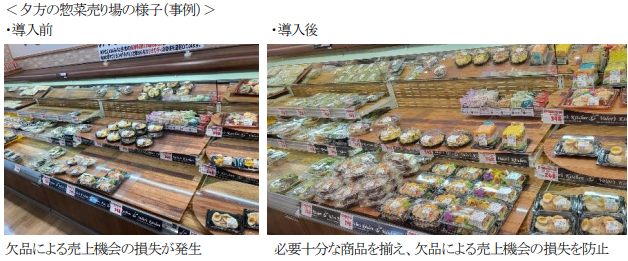 検証の結果、店舗段階で利益の約5%増加や発注作業時間の 27%削減などの効果を得たことから、中部フーズは、2024 年6 月に、中部フーズが惣菜部門の運営を担うスーパーマーケット 76 店舗におけるAI 自動発注の導入を拡大した。