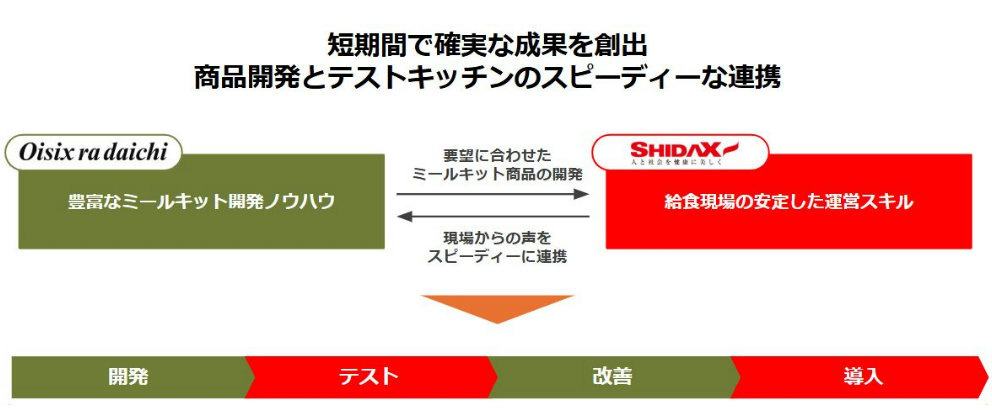 オイシックス・ラ・大地(株)(東京都品川区、高島宏平社長)が展開する、保育施設向けの給食事業「すくすくOisix」は、グループ会社のシダックスフードサービス(株)(東京都渋谷区、堤祐輔社長)との協業による業務用ミールキットの新モデルと献立発注の新システムの提供を、2月3日(月)から開始する。