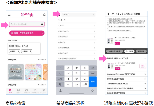 大創産業news|「DAISOアプリ」新機能3つ追加/商品起点の在庫検索が可能に