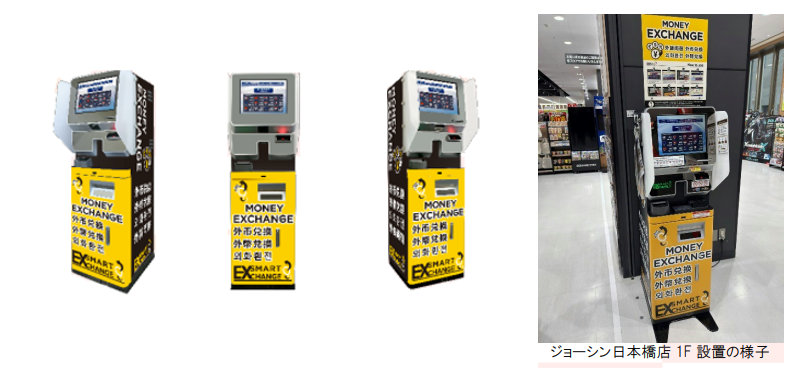 上新電機(株)(大阪府大阪市、金谷隆平社長)は3月19日(水)、大阪日本橋にある「ジョーシン日本橋店」1階に、自動外貨両替機「SMART EXCHANGE」を設置した。