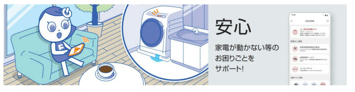 また家電のエラーを検知した場合は「スマートアプリ」のサポート画面に通知され、保証の残り期間や修理受付窓口をシームレスに確認できる。