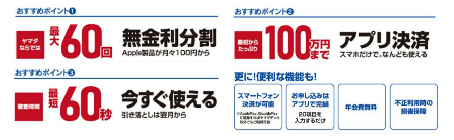 「YAMADAデジタル分割」は、ヤマダアプリ会員であれば「最大60回」「最大100万円」「審査最短60秒」でApple製品を対象に無金利分割払いが利用できるサービスだ。