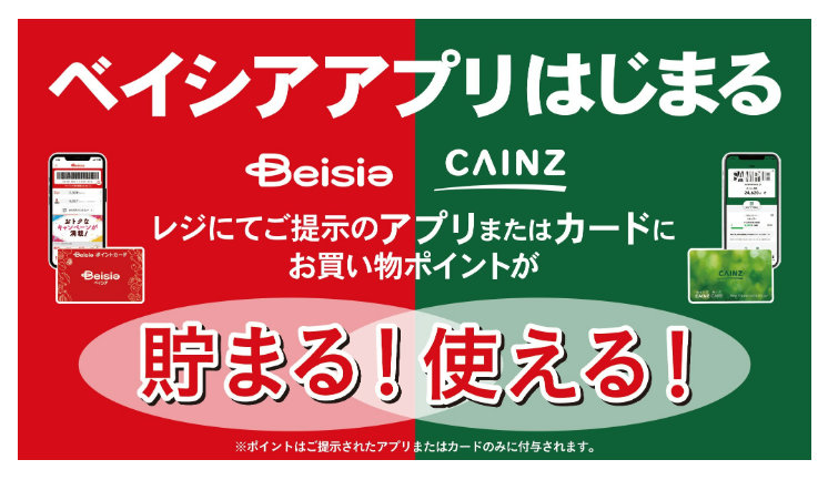 (株)ベイシア(群馬県前橋市、相木孝仁社長)は、全店舗でベイシアポイントサービスを導入した。これにより、ベイシア全店舗で「ベイシアアプリ」および「ベイシアポイントカード」が利用可能となる。