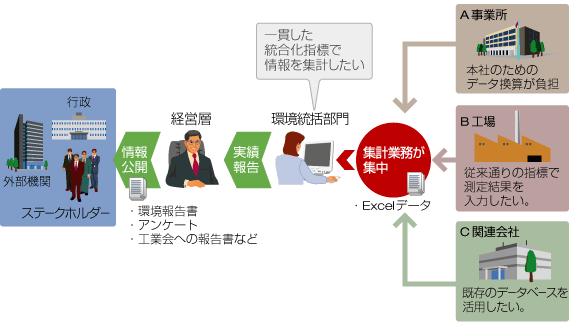 各店舗や拠点のエネルギー情報を統合管理できるクラウド方式のデータベースの構築を行い、全国約2万店のセブン-イレブン店舗および本社などの業務拠点の提供する。そのうえで、各地方自治体へもデータ供給する。「省エネ法定期報告書」や自治体の定める温対法関連条例に対する計画書や報告書など、各種報告書類への転記・登録のほか、作成に必要となるコンサルテーションを行って、トータルに支援する。