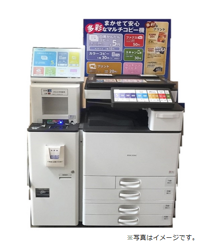 店舗に設置しているマルチコピー機に、行政サービス機能を追加する。平和堂のマルチコピー機にはコピー(基本5円)・写真プリント・文書プリント(USB)・ファックスサービス機能が搭載されている。各種証明書発行にはマイナンバーカードと手数料が必要になる。