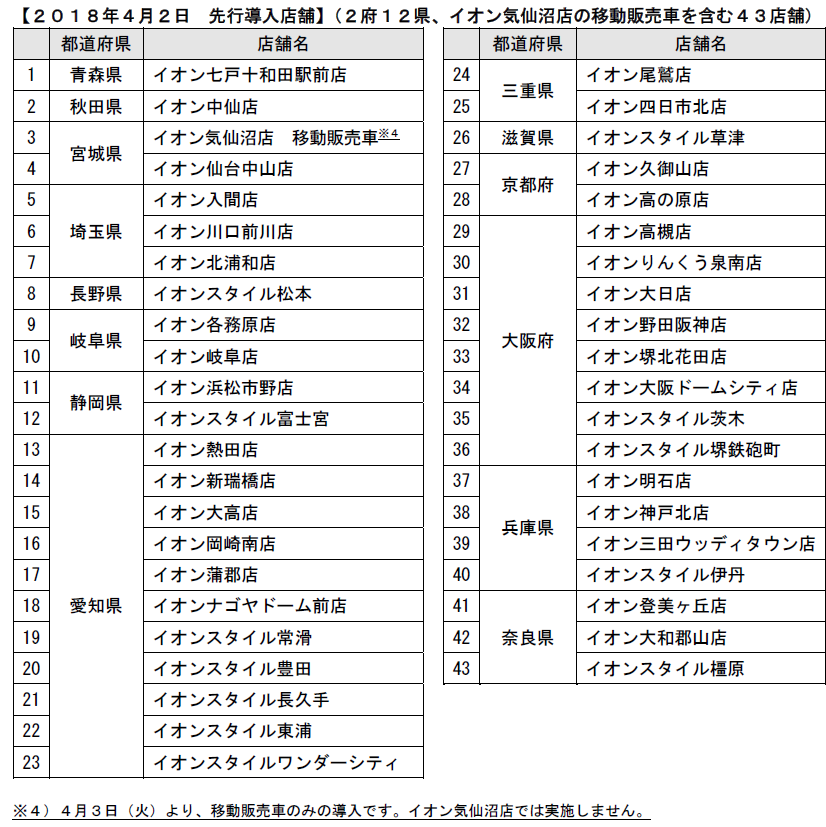 このサービスは今後、2020年2月末までに本州・四国の「イオン」「イオンスタイル」約400店舗へ順次導入していく予定だ。