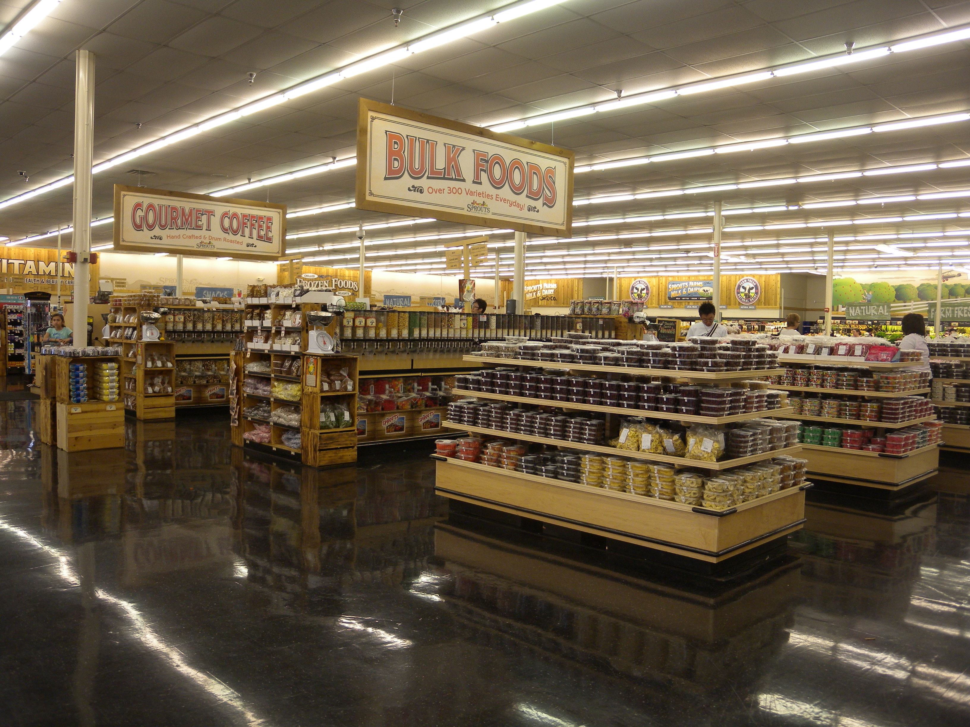 青果部門とレジとの間にはバルク売場を展開するのが特徴。